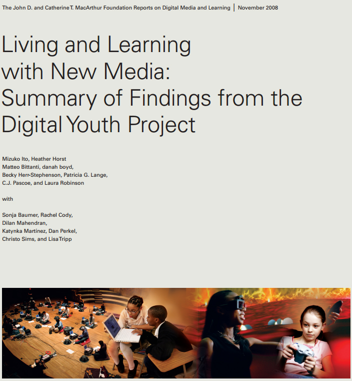 «Social network sites, online games, video-sharing sites, and gadgets such as iPods and mobile phones are now fixtures of youth culture. They have so permeated young lives that it is hard to believe that less than a decade ago these technologies barely existed. Today’s youth may be coming of age and struggling for autonomy and identity as did their predecessors, but they are doing so amid new worlds for communication, friendship, play, and self-expression.»