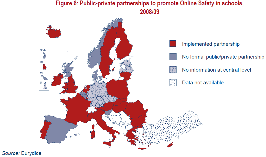 El documento Education on Online Safety in Schools in Europe de Diciembre de 2009 gira en torno a la seguridad relativa a la educación on-line. Lo primero es el hecho de que el uso de Internet y otras tecnologías se ha incrementado exponencialmente en Europa en los últimos años, sobre todo entre los jóvenes quienes según las estadísticas de 2005 usaban Internet en torno al 70% en el segmento de edad entre 6 y 17 años. Este acceso de los jóvenes a Internet ha puesto sobre la mesa 5 áreas donde el peligro es evidente:– la cesión a terceros de información privada