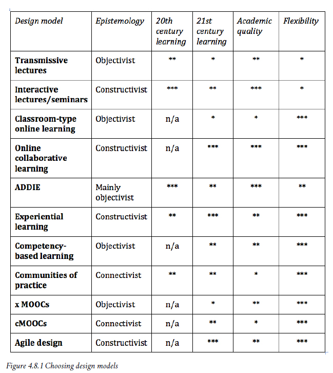 - Learning by Doing/Work: descubrimiento inductivo, exploración, apuntando al aprendizaje en primera persona, experiencial, se trata de construir el propio aprendizaje de fuentes variadas, prefiriendo hacer (construir) a decir, aunque se corre el peligro de caer en la cultura del cut-and-paste (corta y pega).